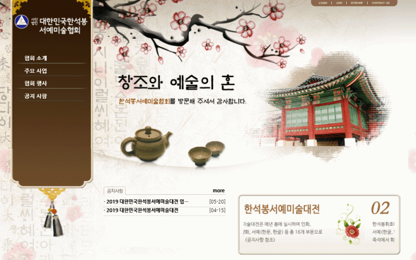(사)대한민국한석봉서예미술협회 페이지 정보 작성자 관리자 댓글 0건 조회 2,460회 작성일 19-05-22 21:00 목록 답변 글쓰기 본문 (사)대한민국한석봉서예미술협회 관련링크 http://hsbcc.or.kr 1518회 연결 이전글대박정보통신 19.05.22 다음글나락 19.05.22 댓글 0 댓글목록 등록된 댓글이 없습니다.